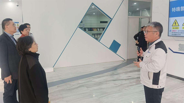 特嗨氫能檢測副總經(jīng)理馬強(qiáng)(右)向調(diào)研團(tuán)隊(duì)介紹公司發(fā)展情況
