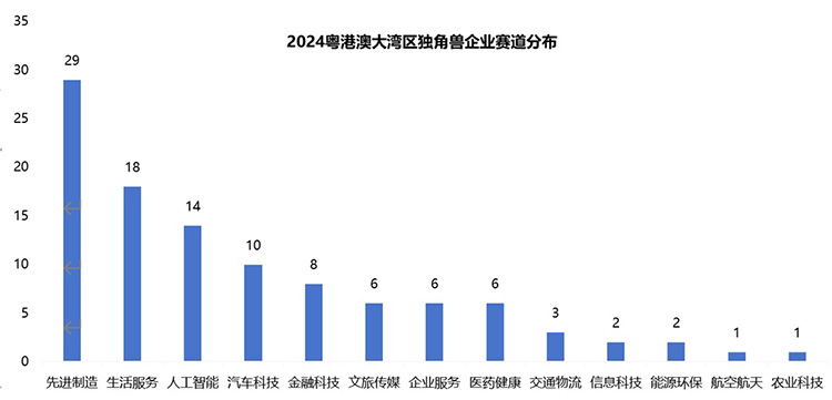 在賽道分布上,粵港澳大灣區(qū)獨角獸企業(yè)主要集中于先進制造、生活服務、人工智能、汽車科技和金融科技等領域。