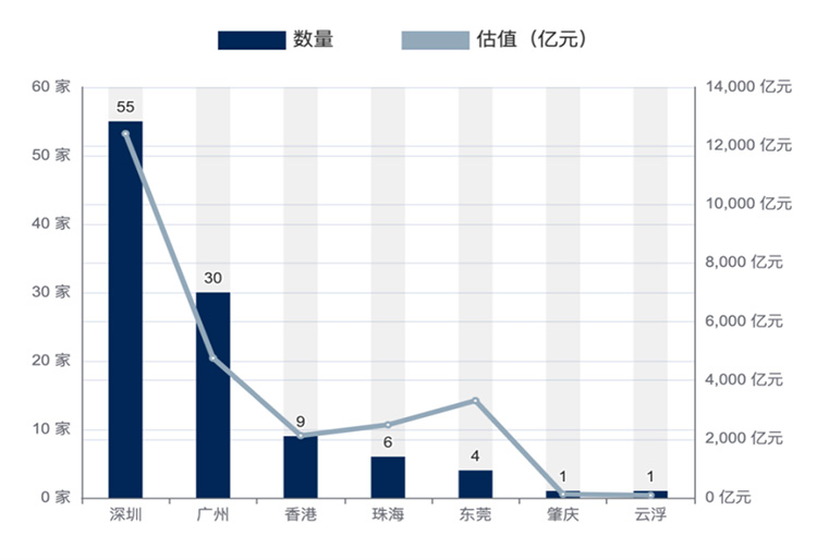 圖:粵港澳大灣區(qū)獨角獸企業(yè)城市分布