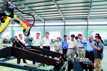 2012年6月1日至3日,對(duì)山普公司而言,注定是一個(gè)難忘的日子。中國(guó)工程院院士,工程力學(xué)專家與管理學(xué)家,暨南大學(xué)應(yīng)用力學(xué)研究所所長(zhǎng),原暨南大學(xué)校長(zhǎng),《科技創(chuàng)新與品牌》雜志社總編輯劉人懷教授;中國(guó)科學(xué)院院士,華中科技大學(xué)教授,機(jī)械工程與自動(dòng)化專家熊有倫;中國(guó)工程院院士,大連理工大學(xué)教授、博士生導(dǎo)師、常務(wù)副校長(zhǎng),機(jī)械制造及自動(dòng)化專家郭東明;本刊社長(zhǎng)、執(zhí)行總編輯宋文芳,副社長(zhǎng)田曉東等一行數(shù)人,赴山普公司進(jìn)行科技調(diào)研。在山東大學(xué)控制科學(xué)與工程學(xué)院副院長(zhǎng)李貽斌、山東大學(xué)自動(dòng)化研究所所長(zhǎng)、教授、博導(dǎo)田新誠(chéng)、煙臺(tái)市科技局副局長(zhǎng)王有林,萊州市市委常委、常務(wù)副市長(zhǎng)國(guó)樹(shù)軍,副市長(zhǎng)周濤,副市長(zhǎng)李亞林,萊州市科技局局長(zhǎng)劉宏,萊州市文峰街道辦黨委書(shū)記馬立平,街道辦主任劉濤等人的陪同下,調(diào)研組一行人聽(tīng)取了山普公司董事長(zhǎng)王淑慧、總經(jīng)理趙顯龍對(duì)山普公司的介紹,并饒有興趣地參觀了山普公司的“裝載機(jī)焊接機(jī)器人”項(xiàng)目。