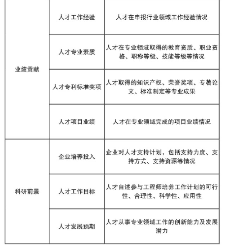 卓越工程師人才選拔評價指標(biāo)體系。根據(jù)中央人才工作會議對卓越工程師的要求,兼顧人才能力與成長需求,在標(biāo)準(zhǔn)設(shè)計(jì)方面,在衡量人才能力、業(yè)績標(biāo)準(zhǔn)的同時,更要關(guān)注人才所在企業(yè)的配套資源和發(fā)展平臺質(zhì)量。因此,選拔評價指標(biāo)維度包括:創(chuàng)新資源、企業(yè)實(shí)力、業(yè)績貢獻(xiàn)、科研前景。具體指標(biāo)及說明見表3。