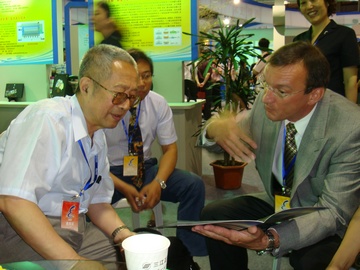秦裕琨院士(左)與外國同行交流
