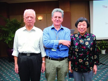 陸埮和夫人周精玉與BeppoSAX衛(wèi)星科學家F.Frontera攝于2006年三亞國際會議期間