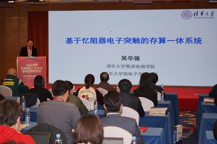 本場報告會聚焦集成電路領(lǐng)域在國內(nèi)外期刊上發(fā)表的熱點、前沿、有重大科研進展的廣受關(guān)注學術(shù)成果,并邀請學術(shù)成果入選作者清華大學集成電路學院院長吳華強、清華大學類腦計算研究中心主任施路平、北京大學教授周治平、中國科學院半導體研究所半導體超晶格國家重點實驗室研究員劉力源分別作題為《基于憶阻器電子突觸的存算一體系統(tǒng)》《硅基光電子芯片與片上光源》《面向人工通用智能的天機芯片架構(gòu)》《基于動態(tài)放大器的Delta-Sigma調(diào)制器及其在太赫茲成像中的應用》的學術(shù)報告。現(xiàn)場氣氛熱烈,報告人、交流專家、現(xiàn)場觀眾以及網(wǎng)絡(luò)觀眾之間,不時進行交流研討、思想碰撞。