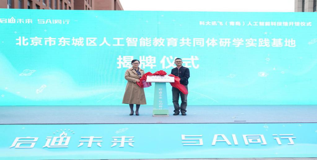 ▲科大訊飛AI產(chǎn)業(yè)加速中心副總經(jīng)理包明明與北京市東城區(qū)青少年科技館副館長金振宇共同揭牌