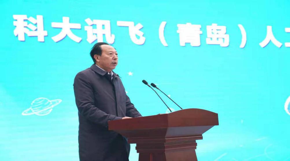 ▲科大訊飛青島AI產(chǎn)業(yè)加速中心總經(jīng)理陳霆發(fā)布AI科普月活動方案