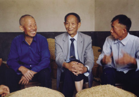 袁隆平與農(nóng)民朋友親切交流。