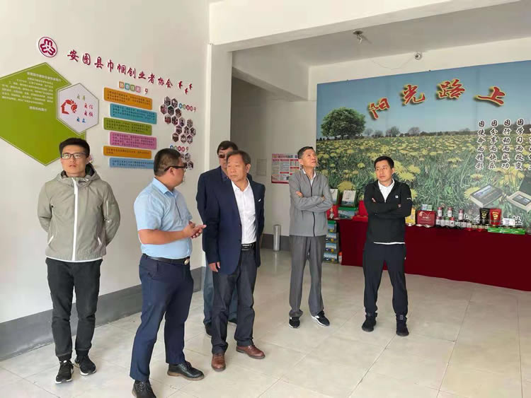 白啟云理事長(右三)在新合鄉(xiāng)恒源蒲公英合作社參觀指導(dǎo)工作