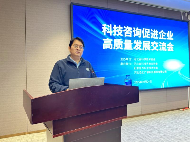2025 年 10 月 24 日,由河北省科學(xué)技術(shù)協(xié)會主辦,河北省科技咨詢業(yè)協(xié)會、石家莊市科學(xué)技術(shù)協(xié)會、河北百匯廣聯(lián)科技服務(wù)有限公司聯(lián)合承辦的 “科技咨詢促進(jìn)企業(yè)高質(zhì)量發(fā)展交流會” 在石家莊市高新區(qū)舉辦 。來自全省科技咨詢業(yè)協(xié)會會員單位、科技型企業(yè)、科研院所的 80 余名代表齊聚一堂,圍繞科技咨詢助力企業(yè)創(chuàng)新轉(zhuǎn)型、推動產(chǎn)學(xué)研用深度融合展開深入探討。