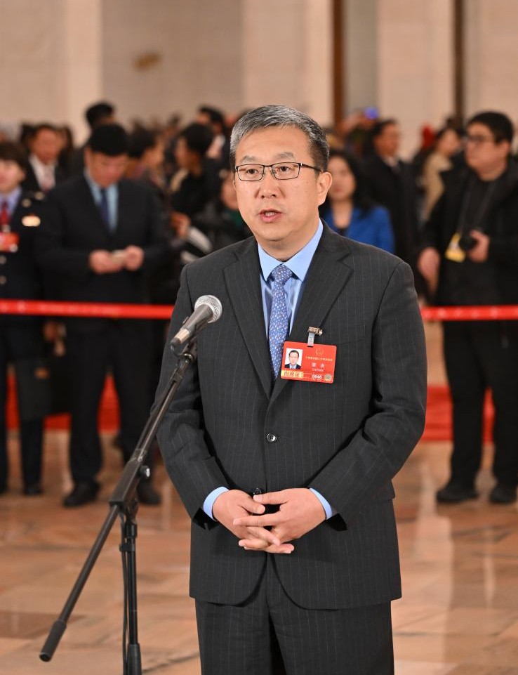 全國人大代表董進接受媒體采訪 新華社記者 李鑫 攝